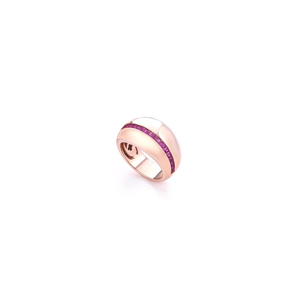 Anello da donna, prodotto da Marcello Pane, collezione Venice. Realizzato in argento 925%, placcato oro rosa, modello impreziosito da zirconi rossi.